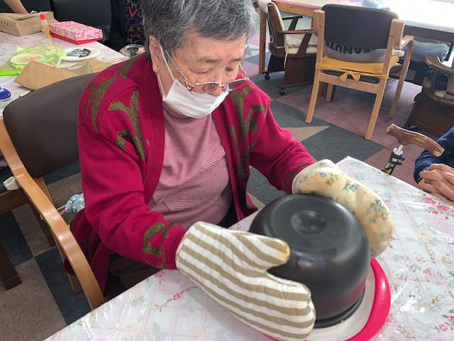 今回は、ご利用者様にもお手伝いをして頂き、美味しいケーキが出来上がりました!