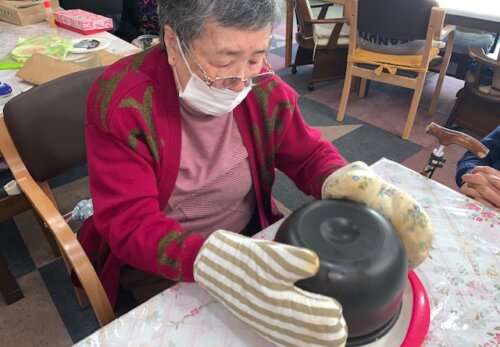 ディサービスではご利用者様があの名物食べ物を作ろうと奮闘されている様子をどうぞ!
