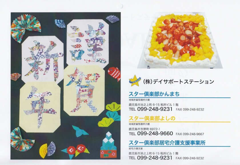 尚、スター倶楽部の営業は、地域密着型通所介護事業所・居宅介護支援事業所共に1月3日より通常営業させて頂きます。