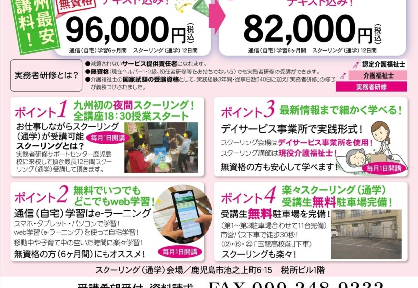 詳しくは「実務者研修サポートセンター鹿児島校」をクリックしてご確認下さい。
