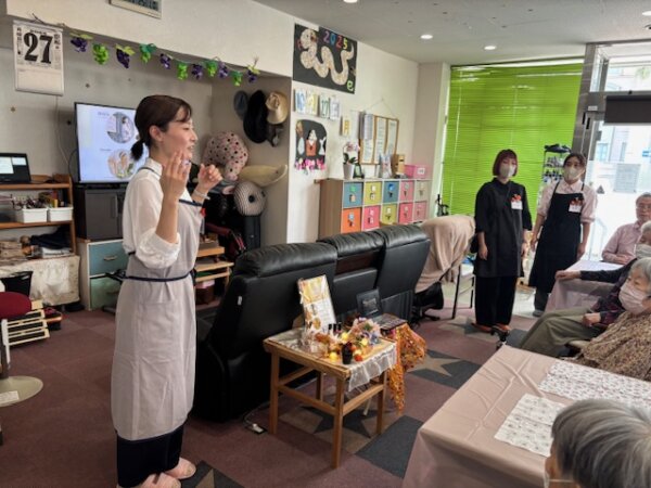 最初はご利用者様も少し緊張している様子でしたが、次第に打ち解けて、ゲームを交えた健康美容体操で和気あいあい☆彡