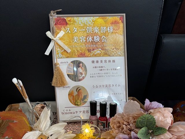本日は、鹿児島県内で訪問介護美容サービスをされているtenowaケア美容の代表である、丸山安子様と有難い事にご縁を頂き、スター俱楽部で美容体験会を開催することとなりました☆彡
