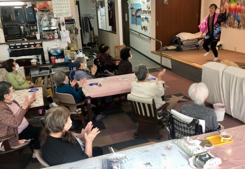 キレのある流れるように綺麗な手さばき、足運びでスター倶楽部を魅了するスタッフM。見ていた利用者の皆様からも自然と手拍子が生まれます。その堂々とした踊りは利用者の皆様の懐かしい感覚や思い出を呼び起こしたようで、「すごく懐かしい!」「見られて嬉しい!」と喜びの声が続出。中には感極まって涙を浮かべる方も。それくらい見事な踊りっぷりでした!