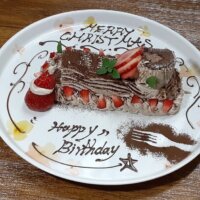 今月は12月という事もあり、クリームたっぷりのブッシュドノエルでした♪