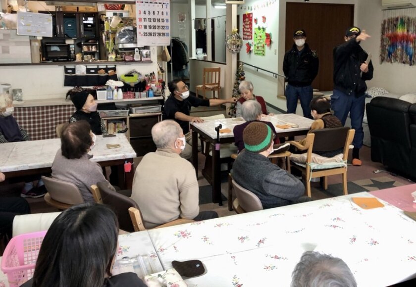 その後、消防隊員の方による火災発生時の正しい対応や避難の仕方、身近に潜む火災の原因などについての説明が行われました。いつも賑やかに笑って過ごしているスター倶楽部のご利用者様ですが、今回に限っては誰もが真剣な表情で話に聞き入っておられました。