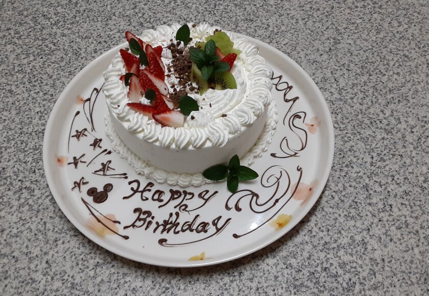 完成直後の誕生ケーキをパチリと撮影させてもらった一枚です