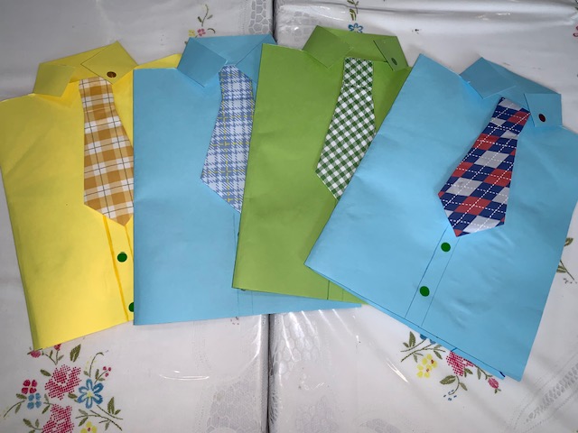 画用紙を切ってシャツの様にしたものに、柄入りの折り紙でネクタイを作ってみました♪