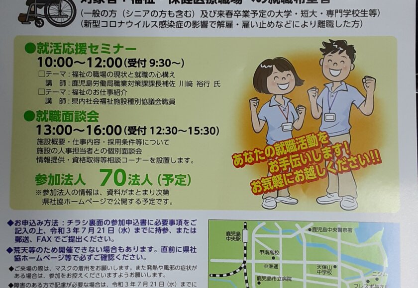 医療・介護関係の企業が合同で就職面談を行う鹿児島では一大イベントの「就職ガイダンス」です。