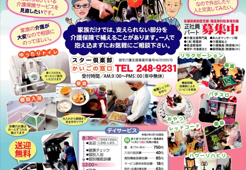 それでもご不安な際は、スター倶楽部居宅介護支援事業所までお問合せ頂ければ、詳細なお話しをさせて頂きます!