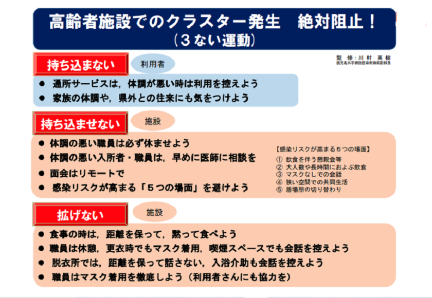 事業所内でのクラスター発生を絶対阻止する気持ちで「3ない運動」を明日(11月14日)より実施させて頂きます。