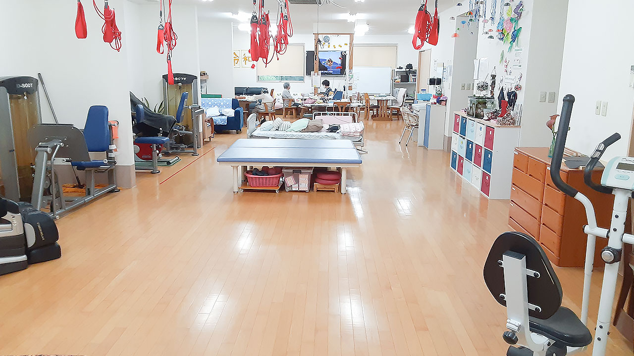 | 機能訓練 | 国家資格を持つ常勤の機能訓練指導員(柔道整復師・あん摩マッサージ師・看護師)が、お一人ひとりの体調に合わせてお身体のメンテネンスを実施致します。 また、日常生活の中で生活リハビリを機能訓練指導員の指示に基づいて行います。 |