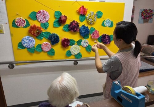 作り方はとても簡単らしく、「可愛い!」と集まってこられたご利用者様たちと一緒にパパっと作って、そのまま持って帰っていただきました。やはり女性の方はいくつになっても可愛いモノには目がないんですね。