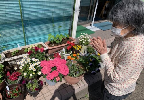 本日はスタッフが購入してきたいろんな草花の植え替えが行われました。購入してきたお花の数が多い為、ご利用者様が5名、スタッフが2名で総勢7名での大掛かりな作業です。手を泥だらけにしながらも皆様は力を合わせ、時には笑い合いながら一生懸命頑張ってくださいました。