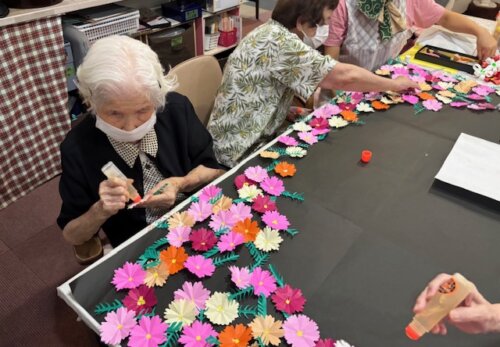 一方、デイサービスでも彩り豊かに春を迎える為の作業が行われていました。