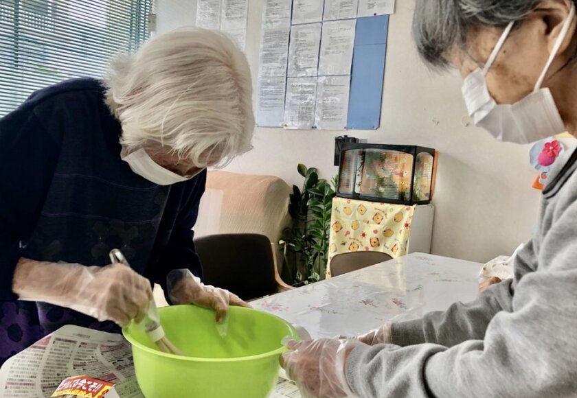 初めての挑戦というわけではないのですが、かなり久しぶりにご利用者様とスタッフでケーキ作りに挑戦していただきました。もちろんマスクや消毒、手洗いをしっかりと行って感染対策も万全!楽しくかつ安全にケーキ作りを行えるように心掛けました。