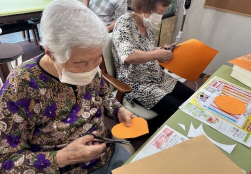 こちらでも創作活動をされていますが七夕飾りを製作中かと思いきや・・・7月になると食べたくなる果物スイカ♪を作成中でした(≧▽≦)定番の赤いスイカはもちろんでしたが黄色スイカも作っていらっしゃいました(*^_^*)作品をみてご利用者様もなんだかスイカが食べたくなってくるのではないでしょうか♪7月の飾りは七夕だけでなくスイカも沢山飾られる事でしょう(/・ω・)/