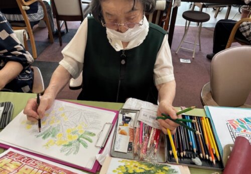 こちらのテーブルでは脳トレ活動をされていらっしゃいます(^◇^)今回は3文字しりとりを行っているようです♪3文字と制限を設けているので中々難しいようです!同じしりとりでもルールを少し変えるだけでも難易度が変わるのでご利用者様も楽しく活動をすることができます(^o^)/