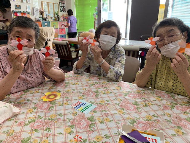 自分たちで作った愛情たっぷり籠った、トンボを思い思いの所に飾り付けていました‼
