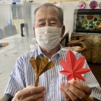 ディサービスでは、創作活動で一足早くに秋の紅葉が出始めているようでした(笑)
