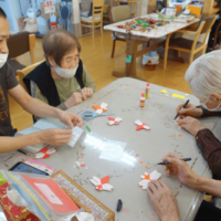 メダカくんたちの水槽が汚れてきていたので、二人のご利用者様にお手伝いをいただき、掃除をする事にしました。大事なメダカくんたちを移し替える作業から始まり、水槽そのものの掃除などを一緒に行っていただきました。