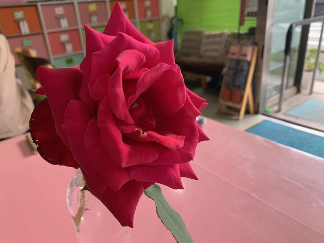 ご利用者様の自宅に咲いていた、満開のバラの花を持ってきてくださいました!