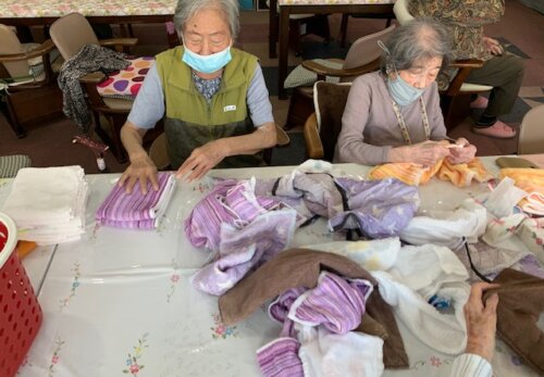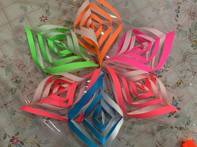 皆様のお力で、飾り付ける作品はいっぱいできたので、それを笹に吊るすための紐を作っていかないといけません!