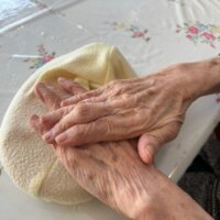 ポンポンと軽くたたいたり、押し付けてまわしてみたり、花の形が付くようにグイグイと傾けてみたり