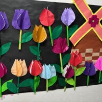 画用紙に切り取った用紙を貼り付け(#^.^#)画用紙に綺麗なビーズが貼られている所を中心に綺麗な用紙を花の形に貼り付けていらっしゃいました( ^ω^ )そして段々と花の全体像が出てくると♪