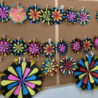 カラフルな折り紙が黒色の折り紙と組み合わせることで完成したのがお祭りでも見かける提灯でした\(゜ロ\)(/ロ゜)/色んな色の色紙を合わせることで色々な柄の提灯が完成していくようです(/・ω・)/お祭りでも提灯があるとお祭りに来たな~と感じますね(^◇^)
