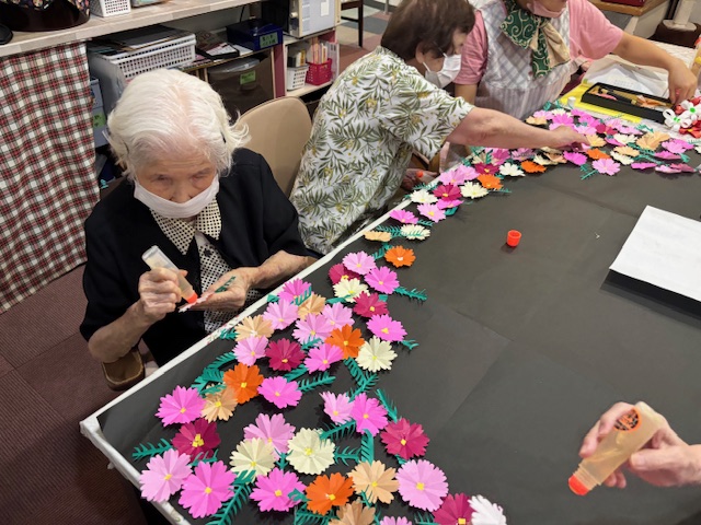 それでは先程できた、コスモスを飾り付けていきますよ~