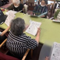 そして、ご利用者様には新聞紙をどんどんちぎって頂きこちらを他の物に糊付けしていく作業があったようです(゚Д゚)ノ先ほどの用紙と合わせるのかはたまたべつの何かになるのかとても気になりますね。