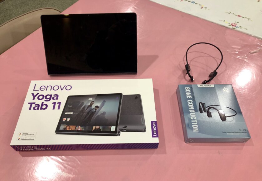 脳トレなどのリハビリも大事ですが、利用者様の中には「昔の歌謡番組の動画が見たい!」「好きなジャズ音楽を聴きたい!」等、自分の好きな物を見たり聴いたりしたいという方もいらっしゃいます。そんなご希望にお応えして、タブレットでお好みの動画や音楽を楽しめるように設定しました。そこで役立つアイテムがコレ!