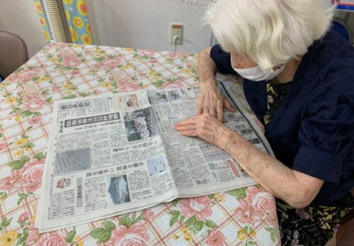 上半身の運動も新聞紙棒があればしっかりと動きができます【デイサービスのトレーニング】