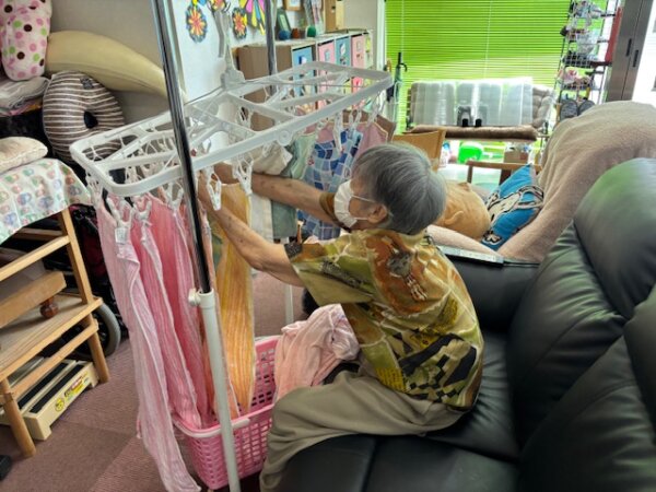 写真のモノは洗濯を行ってもらっていますが、他にも料理や配膳など日常的な動作をリハビリと化し、身体機能はもちろんの事、認知機能の向上にもつながるんですよ~