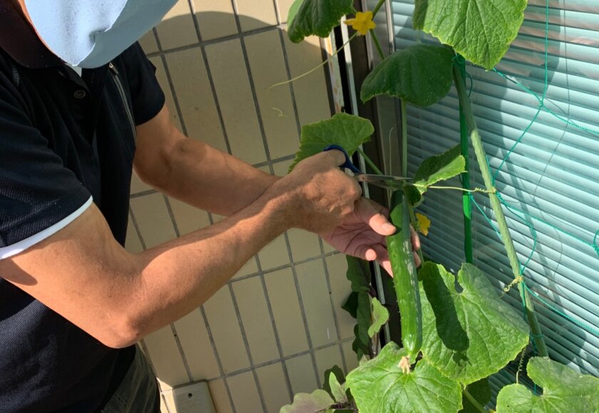 ついに今朝「きゅうり」の収穫をしました!!! そして早々本日のランチのおにぎりの添えさせて頂きました(嬉)