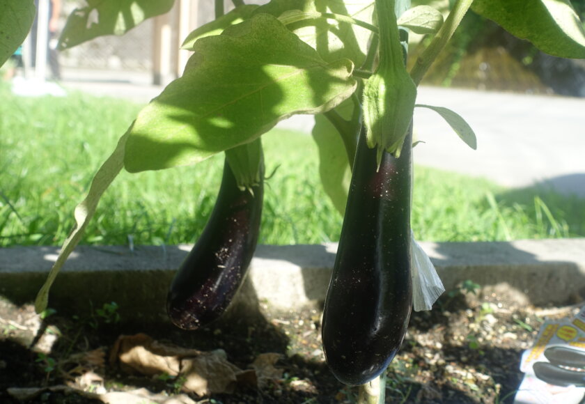 前のブログでは小さいナスが出たばかりでしたが、以前より大分大きくなり他の茄子も育ってきている様子でした♪