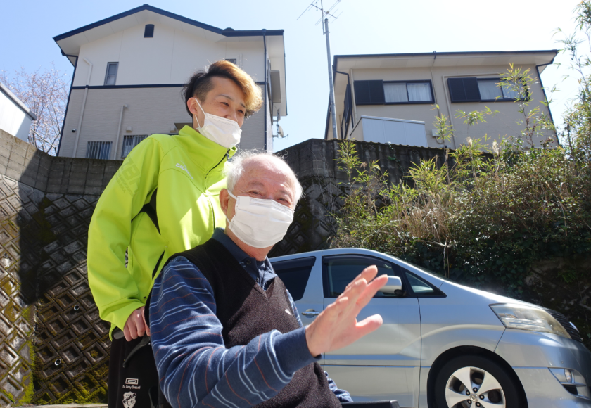 リハビリも一生懸命頑張っているご利用者様♪外での歩行はまだリスクがあるので歩行は難しいですが、車椅子に乗って外の新鮮な空気と光を浴びてとても気持ちよさそうです(●´ω`●)