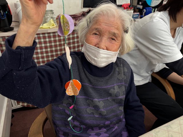 計6枚の折り紙、ずれることなく貼れるようご利用者様も真剣そのもの♪