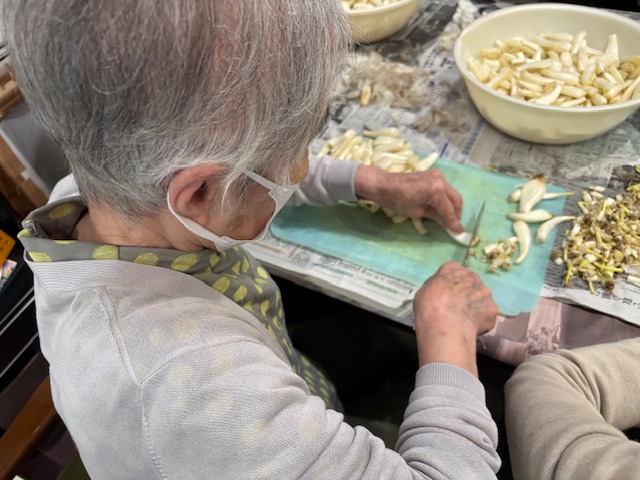 という事で、この5kgのラッキョウたちをご利用者様にも協力してもらいながら下拵えをしていきたいと思います♪