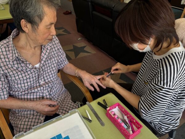 爪切りのパチパチという音も心地よく感じられ、受けているご利用者様も気持ちよさそう( ´∀` )