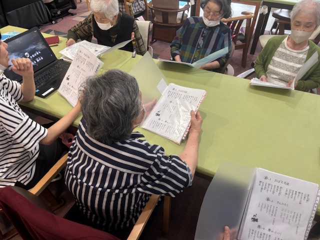 皆様、本で歌詞を確認しながら、唱歌を合唱♪