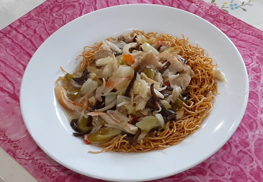 麺が少々柔らかくなった所を食べるのが私の食べ方です!皿うどんには、おにぎりですよね⁉ 梨ゼリー