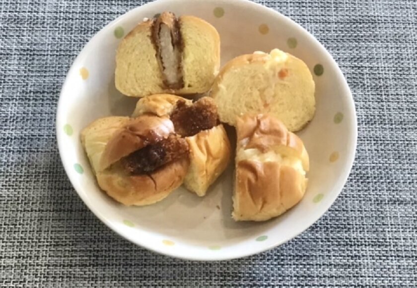 ロールパンの中身は、豚カツとポテトサラダです。ご利用者様もスタッフも大好きで、早々に全て完食!(笑)