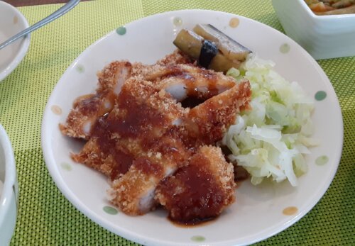 やっぱり手作りがベスト‼‼ 小鉢は、大根サラダ 人参と厚揚げの味噌汁 アップルゼリー