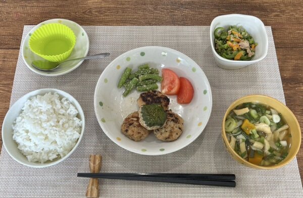つくねの上にしその葉がのっておりますが、これはスター倶楽部農園で収穫したしその葉です。