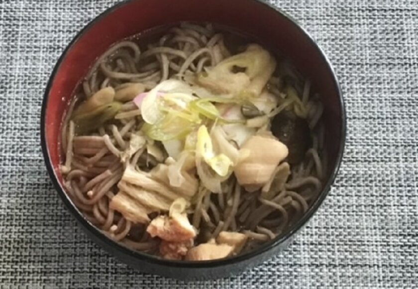 秋バージョンでの登場なので「温」でのご提供です。温蕎麦の具には、きのこ・鶏肉・葱を使っております。