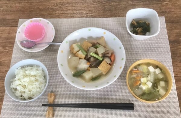 これから増える煮物メニューですね⁉ 厚揚げ・大根・人参・ごぼう・きのこ・里芋等々栄養満点の一品です。