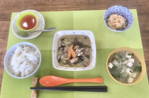 中華の定番メニューで野菜たっぷり栄養満点です。豚肉・人参・白菜・玉葱・きくらげ・きのこと豊富な食材で調理しました。