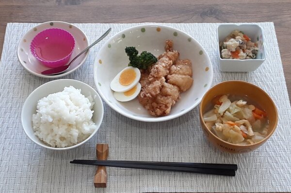 2月18日の手作り昼食は、白身魚の竜田揚げ