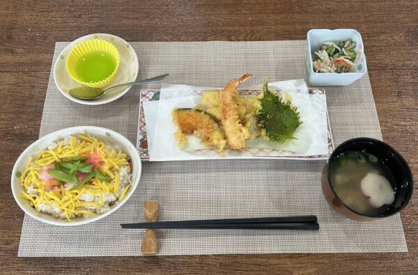 実は本日スター俱楽部の誕生会だったのです。ちらし寿司に天ぷらと誕生者様のリクエストにお応えしました。